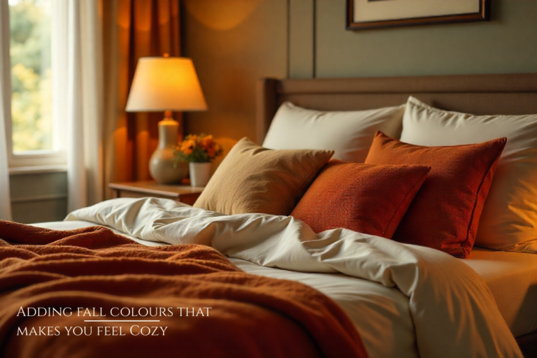 Want to try this without spending much? Start tiny. Change just your shams to a warmer color. Add one throw pillow in a fall shade. Switch that bright summer picture for something deeper. Small changes make the whole room feel different.